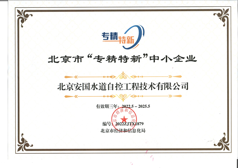 • 喜訊/安國(guó)水道獲得“北京市專精特新中小企業(yè)”稱號(hào)